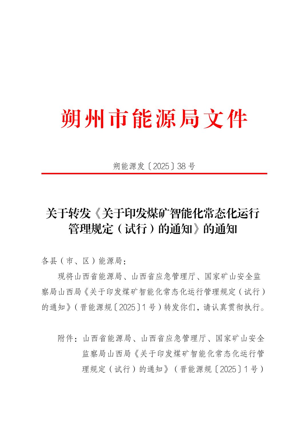 关于转发《关于印发煤矿智能化常态化运行管理规定(试行)的通知》的通知